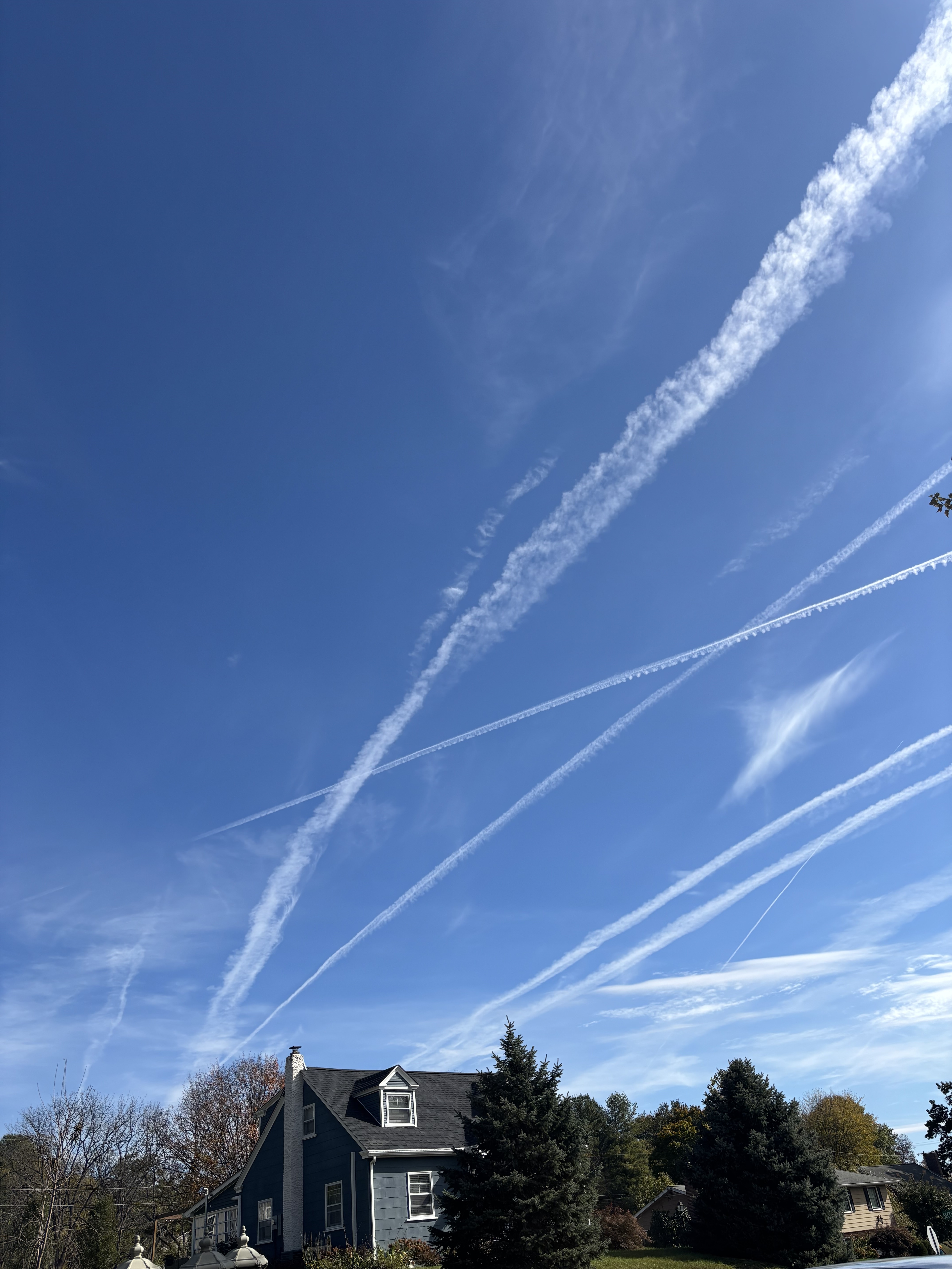 Here’s a few images of the weekend sky over here in SE PA. Criss crossed NE to SW Saturday, and NW to SE on Sunday. Weird.
